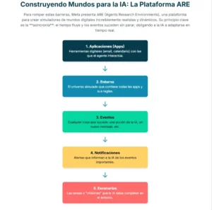 Meta Agents Research Environments, o ARE, es la respuesta directa a los problemas que acabamos de describir. No es un simple entorno, sino una plataforma de investigación, un sofisticado andamiaje de software diseñado para permitir a los científicos construir, ejecutar y analizar mundos digitales simulados con un nivel de detalle y control sin precedentes. La filosofía que subyace a ARE es tan elegante como poderosa: todo lo que ocurre en el entorno es un evento.