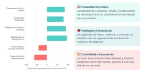 La metamorfosis del mercado laboral exige una recalibración fundamental y urgente de las habilidades que como sociedad consideramos valiosas. El modelo educativo tradicional, heredero de la Revolución Industrial y centrado en la estandarización, la memorización de información y la ejecución de procedimientos fijos, se vuelve anacrónico y contraproducente en un mundo donde el acceso a la información es instantáneo y los procedimientos son automatizables. La nueva prima económica y profesional se sitúa en las competencias que son intrínsecamente humanas y, crucialmente, complementarias a las capacidades de la inteligencia artificial.