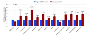 El gráfico no mira precio por token, sino gasto extremo a extremo para terminar la misma tarea. En la mayoría de los benchmarks, V3.1 resulta más costoso por tarea que un modelo de referencia optimizado en eficiencia. Esto indica que el aparente ahorro por token se pierde en reintentos, pasos adicionales o mayor latencia. Para compras y presupuestos, la métrica relevante es costo por tarea completada, no tarifa nominal.