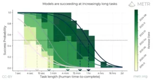 Sin embargo, una vez que estos prodigios salen del entorno protegido del laboratorio y se enfrentan a la desordenada y prolongada realidad de un problema del mundo real, la brillantez a menudo se desvanece. La misma IA que puede escribir una función de código perfecta en treinta segundos se muestra irremediablemente incapaz de construir una aplicación sencilla a lo largo de una tarde. El modelo que puede responder a cualquier pregunta de un examen de historia es incapaz de escribir un ensayo de investigación coherente que requiera consultar fuentes, estructurar un argumento y refinar un borrador durante varias horas. Esta desconcertante brecha entre la habilidad en tareas cortas y la incompetencia en tareas largas es el secreto a voces de la industria de la IA, el abismo que separa la «capacidad» de la verdadera «autonomía». Es la diferencia, como ha propuesto un enigmático y muy respetado laboratorio de seguridad e investigación en IA, entre un interno brillante y un empleado de confianza. El interno puede ejecutar cualquier instrucción específica que se le dé con una velocidad y precisión asombrosas, pero requiere una supervisión constante. El empleado, en cambio, puede recibir un objetivo de alto nivel y trabajar de forma autónoma durante horas, o incluso días, para conseguirlo.