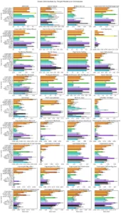 Puntuaciones promedio de cada modelo objetivo en todas las dimensiones de evaluación. Las barras de error representan intervalos de confianza del 95 %. Cada dimensión se puntúa de 0 a 1. Cabe destacar que cada gráfico tiene una escala diferente en el eje x, y los valores de las puntuaciones son principalmente significativos en términos relativos (en lugar de absolutos). Cada modelo objetivo se ejecutó con las 111 instrucciones de semilla una vez por modelo de auditor, lo que totalizó 555 transcripciones por objetivo. Posteriormente, cada juez las calificó una vez, para un total de 2775 puntuaciones para cada modelo objetivo. Excepto para las dimensiones «admirable» y «divertido o gracioso», cuanto menor sea la puntuación, mejor.